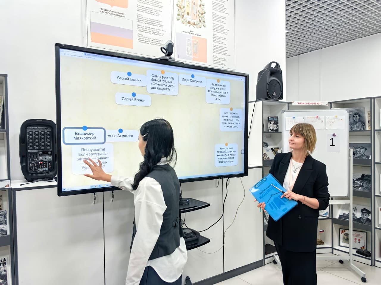 Во второй части прошла интерактивная игра, направленная на закрепление знаний о творчестве Есенина. Старшеклассники отвечали на вопросы, разгадывали загадки, участвовали в мини-конкурсах, связанных с его стихами и жизнью. Игра вызвала живой отклик, поддержала интерес к поэту и способствует развитию творческого мышления.