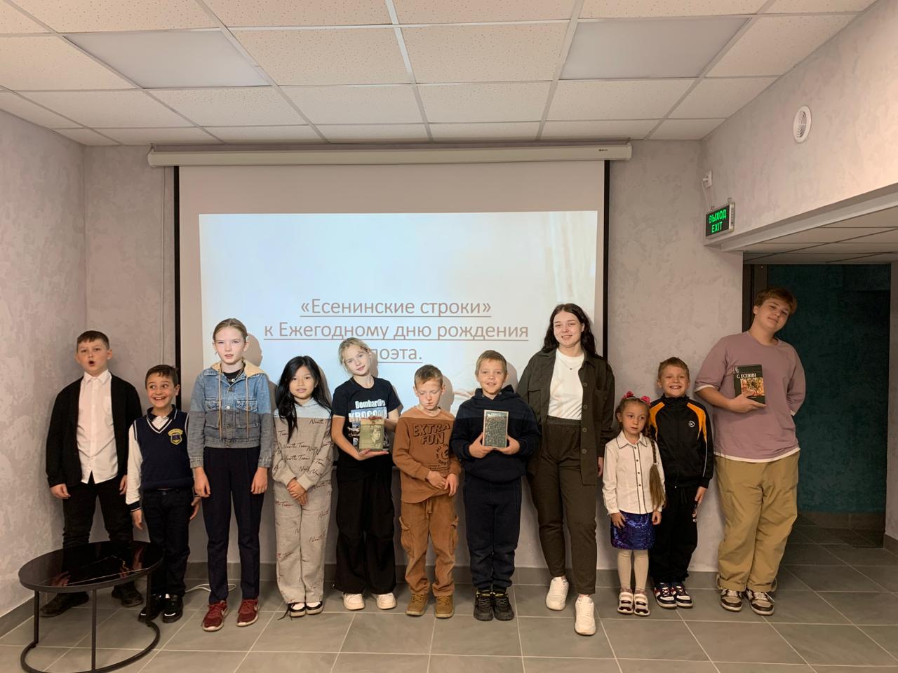 Библиотечно-информационный центр имени А. П. провёл громкие чтения «Есенинские строки» к Ежегодному дню рождения Сергею Есенину. Для учеников 1-2-4-8-х классов частной образовательной школы Интернешнл Клаб.