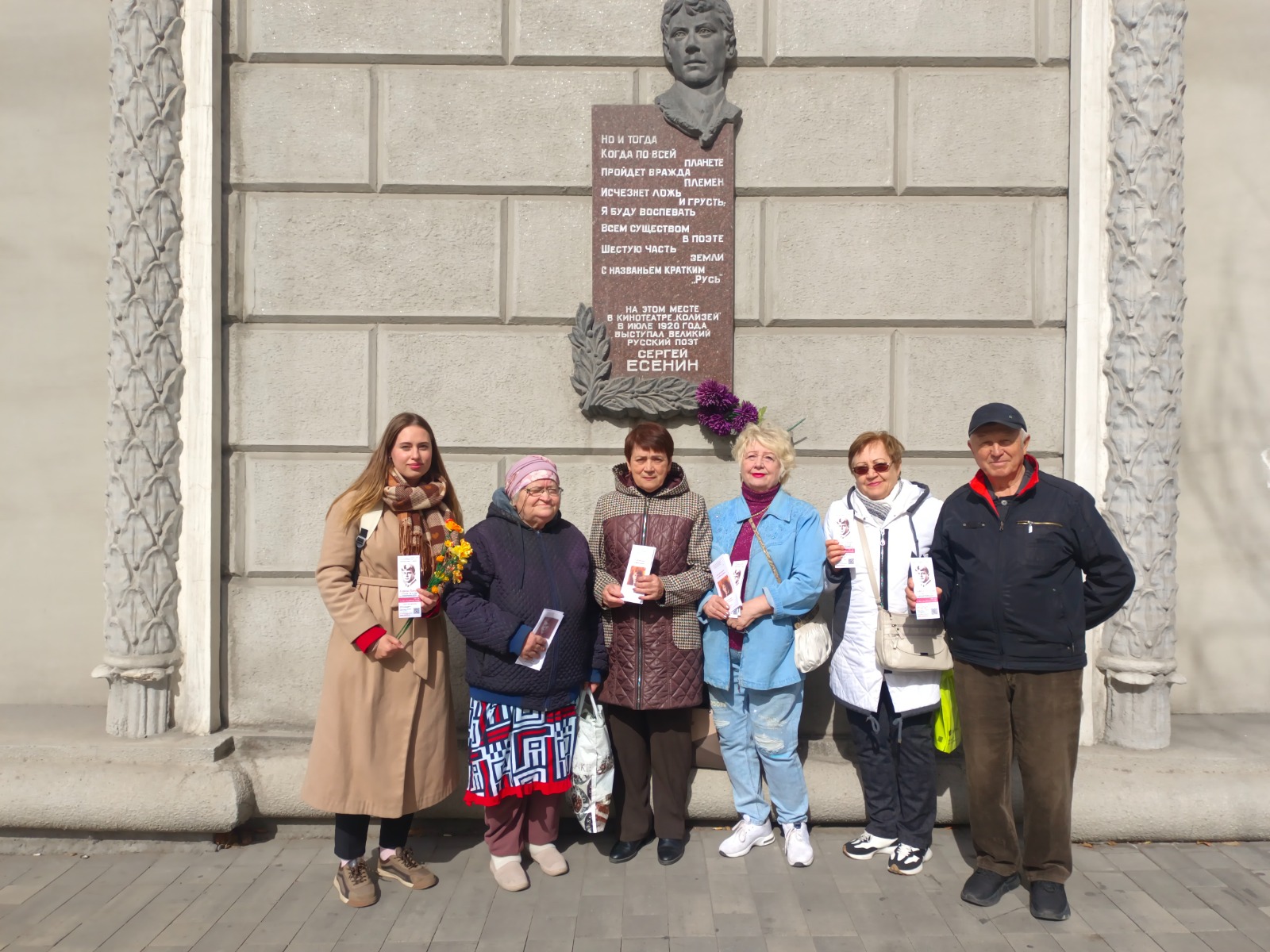 Затем, уже взрослые читатели, члены библиотечного клуба «Встреча» отдали дань памяти великому русскому поэту, посетив мемориальную доску, установленную в честь триумфального выступления Сергея Есенина в нашем городе в 1920 году.