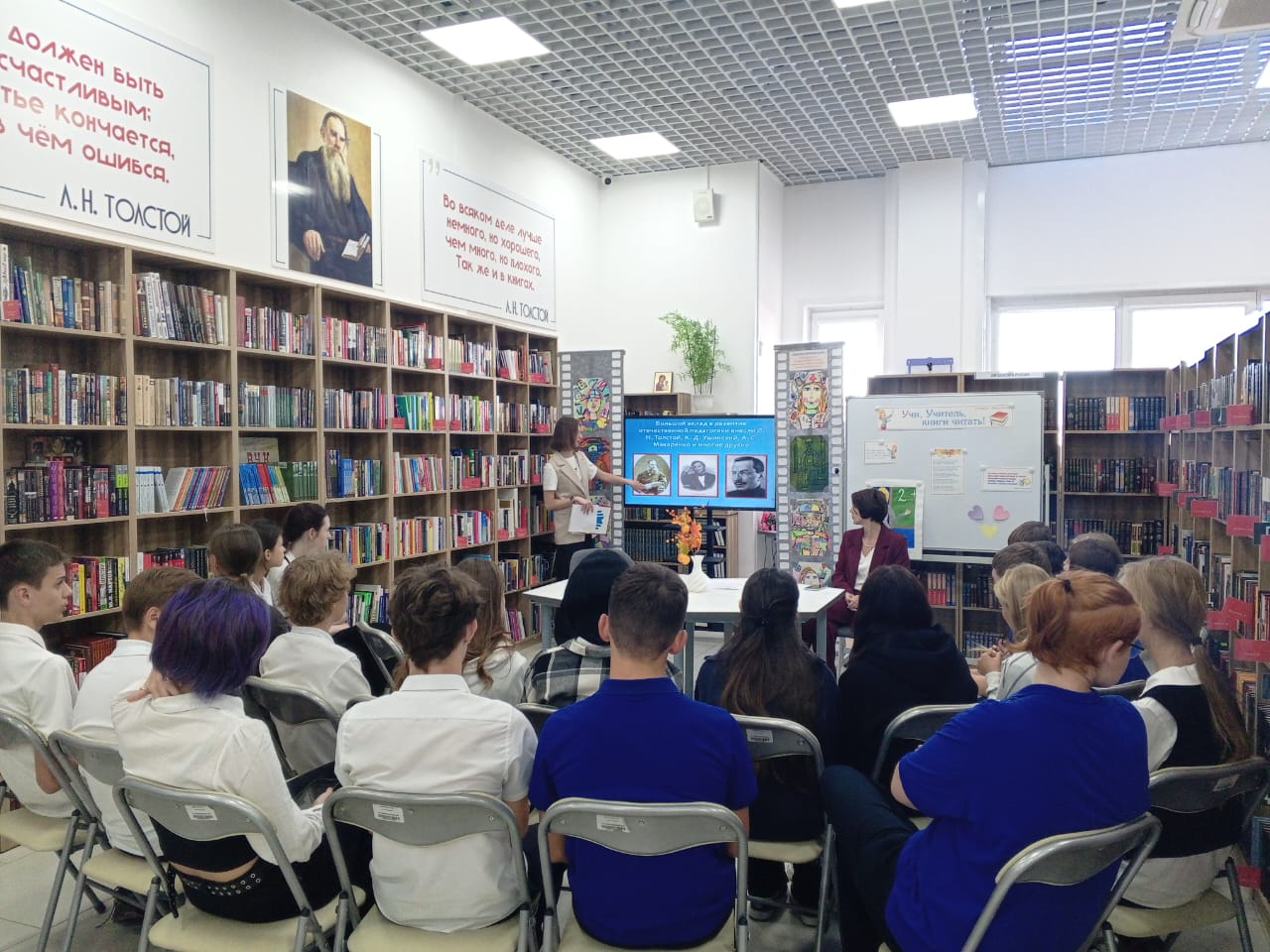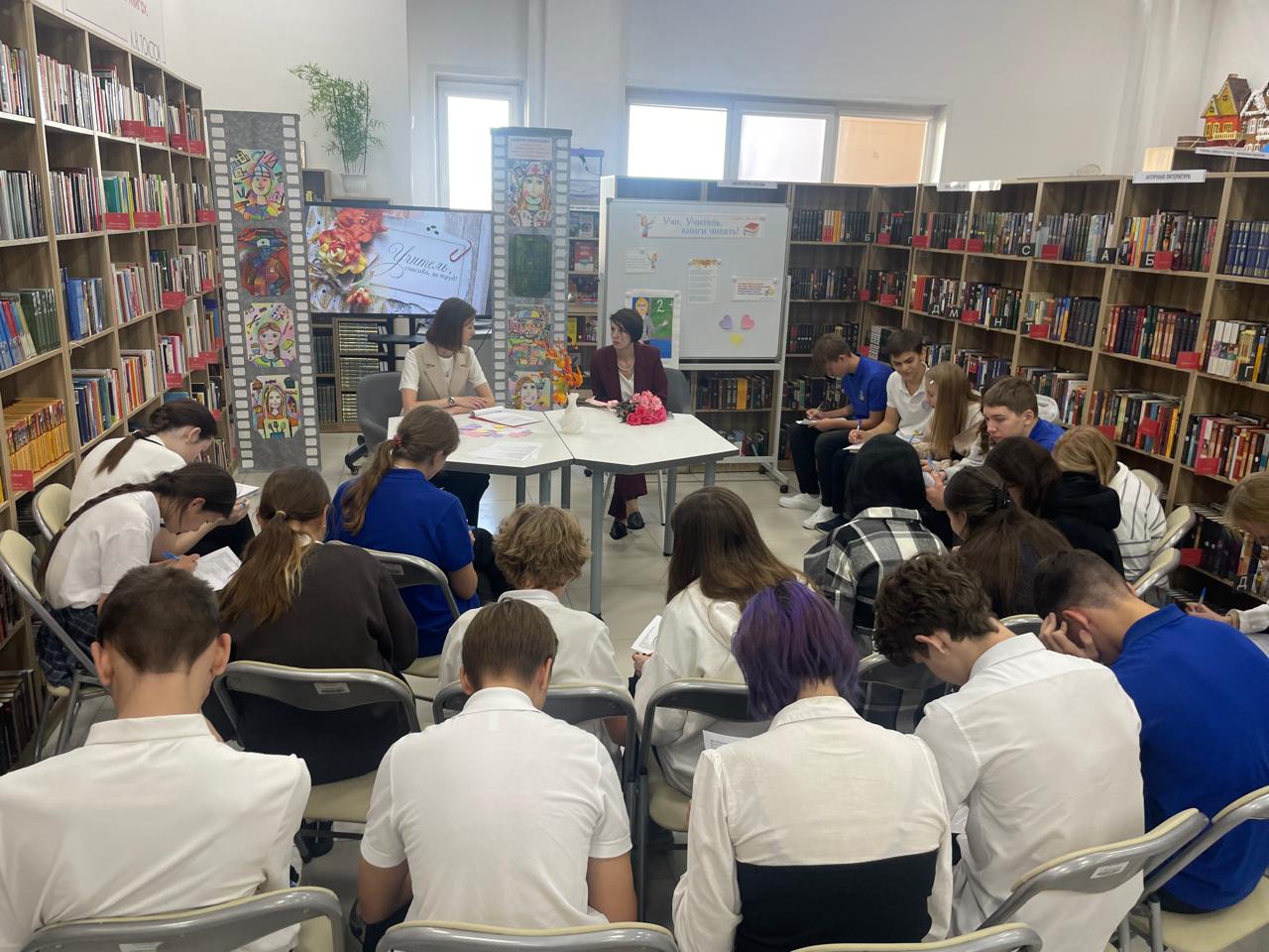 В Библиотечно-информационном центре семейного чтения имени Л. Н. Толстого прошел разговор о важном «Учитель - это звучит гордо!», в котором приняли участие учащиеся 9 «Д» класса МБОУ «Школа № 75».