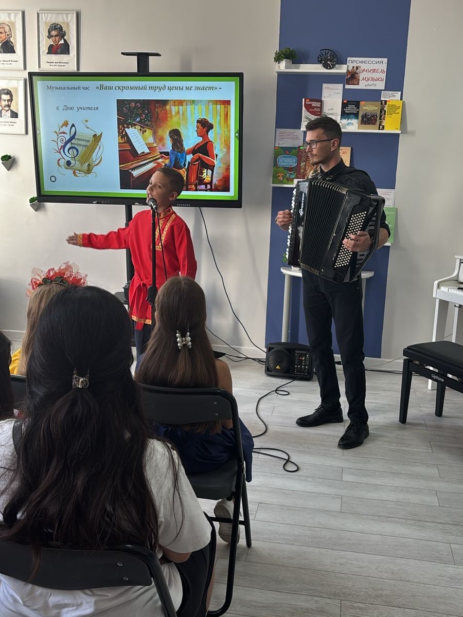 В музыкальном салоне «АнтреСоль» музыкально-нотного отдела Центральной городской библиотеки имени М. Горького собрались гости, преподаватели и учащиеся ДШИ №8 имени Д. Шостаковича. Они приготовили концерт, посвященный празднику всех учителей.