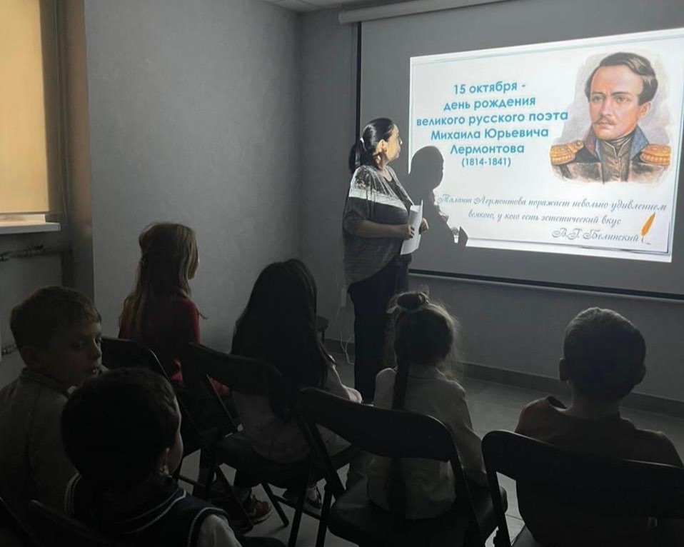 В Библиотечно-информационном центре имени А. П. Чехова прошел час информации «Михаил Лермонтов. Судьба поэта» в рамках межрегиональной акции «Лермонтовское наследие» для учеников 1, 2 и 4- х классов частной образовательной школы Интернешнл Клаб.