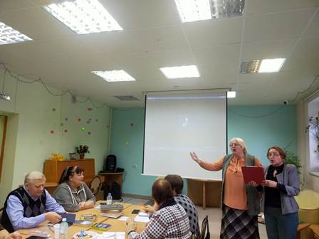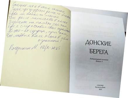 Далее участники мероприятия приступили к Поэтической эстафете «Пишем для детей». Роза Агоева прочитала стихотворение ростовской поэтессы Натальи Андреевны Майер «Бабка Ёжка в космосе» и «Посвящение внуку Мишеньке». Борис Харламов – «Детское» и «Робот», Галина Клиточенко – стихотворение «Весна». Наталья Холодова озвучила детские воспоминания в авторском стихотворении «Рисунок для папы». Лариса Фомина прочитала свои стихотворения для детей и посвящения внукам из сборника «Свет поэтической зари». Светлана Сергеева прочитала стихотворения Ларисы Фоминой из этого же сборника. Людмила Громоглазова познакомила творческую аудиторию со своими «Загадками». Детским творчеством поделились Людмила Захарова, Валентина Штефанова, Александр Тюрин. Они прочитали авторские стихотворения, написанные в детском возрасте. В контексте Поэтической эстафеты участники заседания познакомились с известными способами экспериментов со строфикой и рифмой, предложили свои нововведения. Елена Трусова прочитала стихотворения для детей и для взрослых: «Как хочется Нового Года» и «Прикосновение». Михаил Кострикин передал в дар библиотеке новый выпуск сборника «Донские берега» с опубликованными в нём авторскими произведениями.