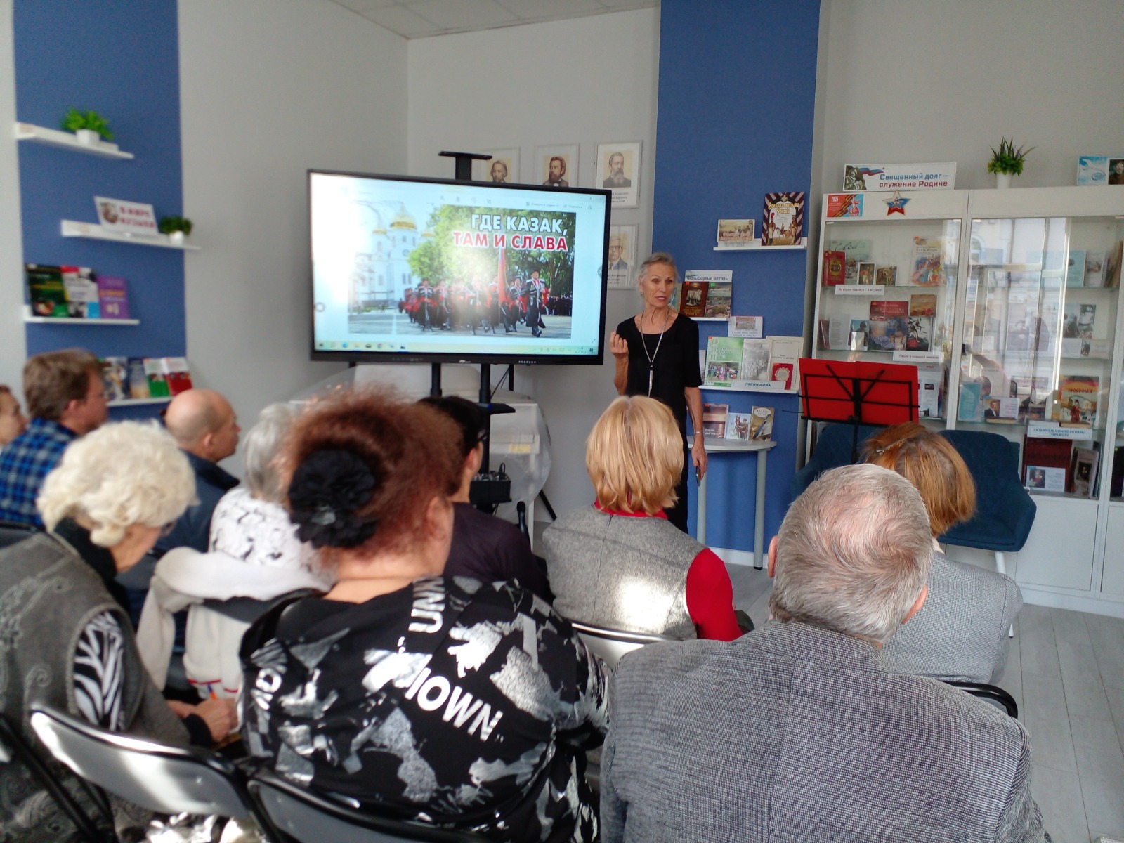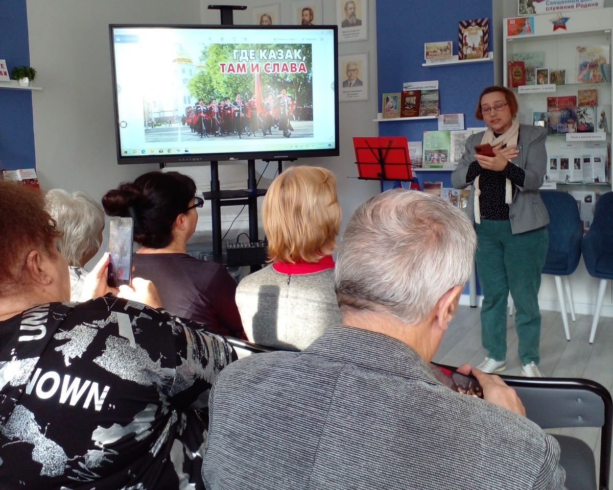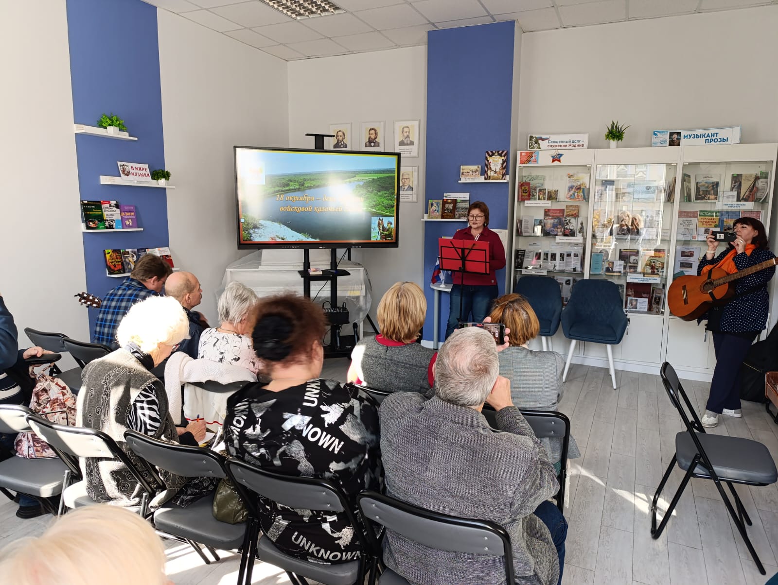 История праздника, который отмечается 18 октября, связана с событиями Отечественной войны 1812 года. Казачьи полки принимали в ней самое непосредственное участие, как и во многих военных кампаниях. Подвиги казаков в сражениях под Бородином, Лейпцигом, при взятии Парижа получили широкую известность. Библиотекарь провела беседу об истории праздника и викторину о славных победах казаков донского края. Также состоялся концерт с участием членов клуба «Созвездие», которое исполнили песни и стихотворения о казачье доблести и донском крае.