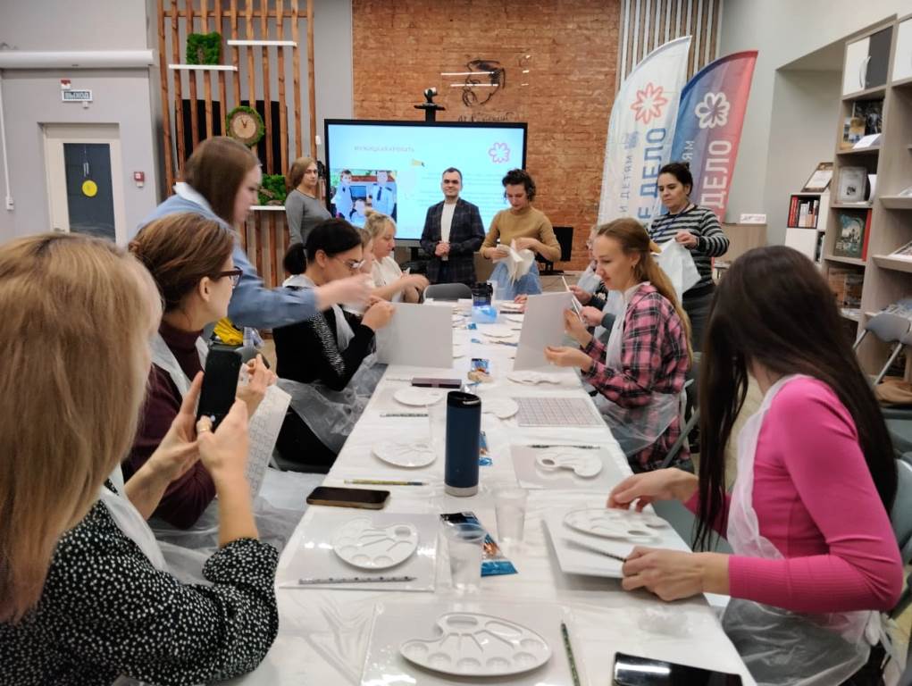 Для взрослых был проведён мастер-класс по живописи Лидии Железняк, художника-живописца из Ростова-на-Дону «Рисуем Белого Кролика».