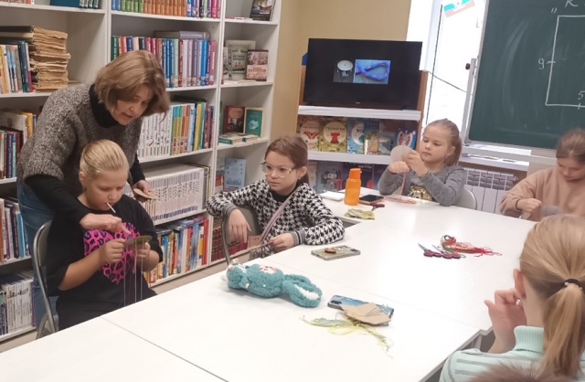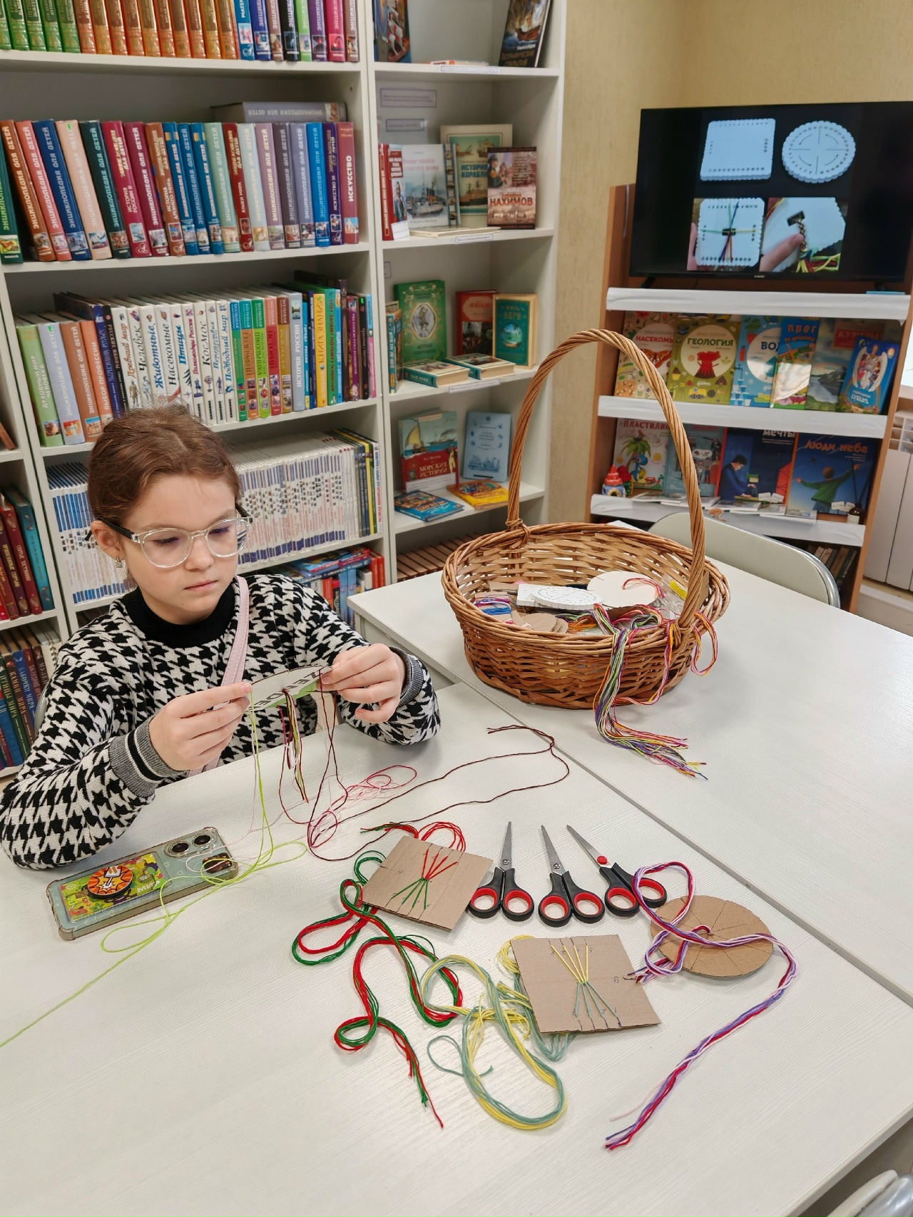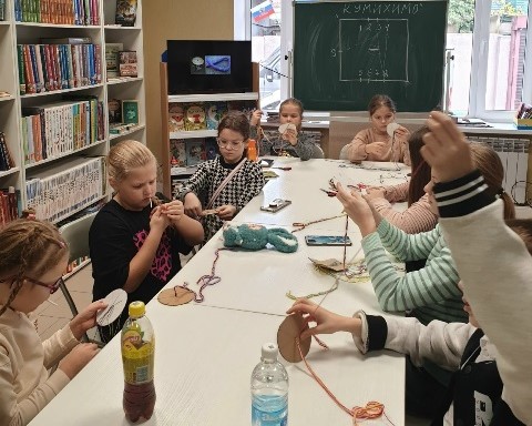 Вовремя мастер-касса ребята использовали приспособления для плетения в технике «кумихимо», изготовленные из плотного картона. Участники научились правильно рассчитывать длину ниток, необходимых для работы, «читать» схему, «рассчитывать шаг».