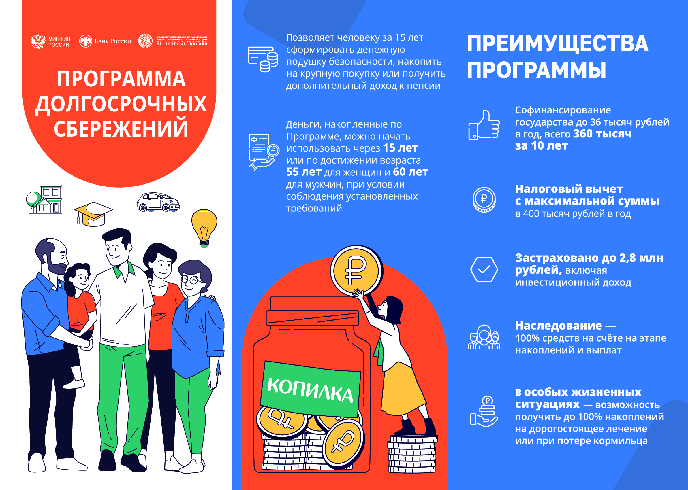 Преимущества «Программы долгосрочных сбережений» смотрите ниже.