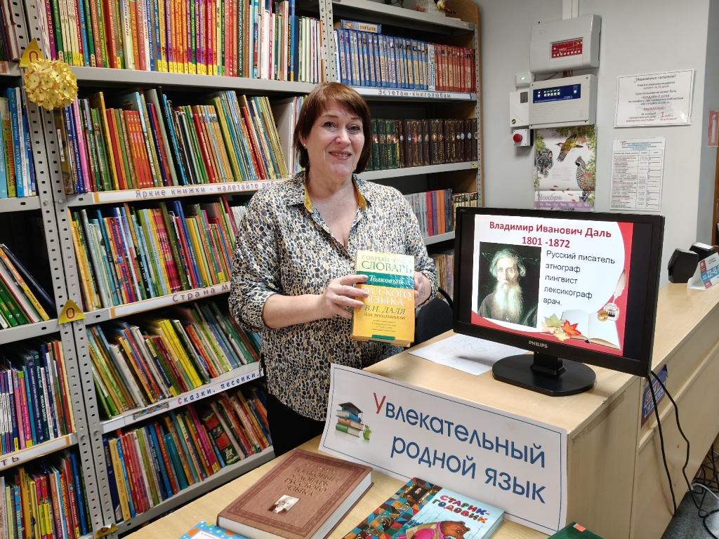 В начале мероприятия специалист библиотеки рассказала о жизни и творчестве этого удивительного человека, который всю свою жизнь посвятил великому русскому языку. Из презентации дети узнали, что начиная с 18 лет, В. И. Даль собирал слова, что в составленный им «Толковый словарь живого великорусского языка», до сих пор остаётся непревзойдённым. Уникальность словаря В. Даля в том, что словарь включает в себя не только толкования отдельных слов, но и множество пословиц поговорок, устойчивых выражений, диалектизмов, народных примет, образцов фольклора. Этот словарь – настоящее сокровище, которое хранит в себе мудрость и красоту русского языка. Затем участники мероприятия совершили виртуальное путешествие по местам, где побывал Владимир Иванович Даль.