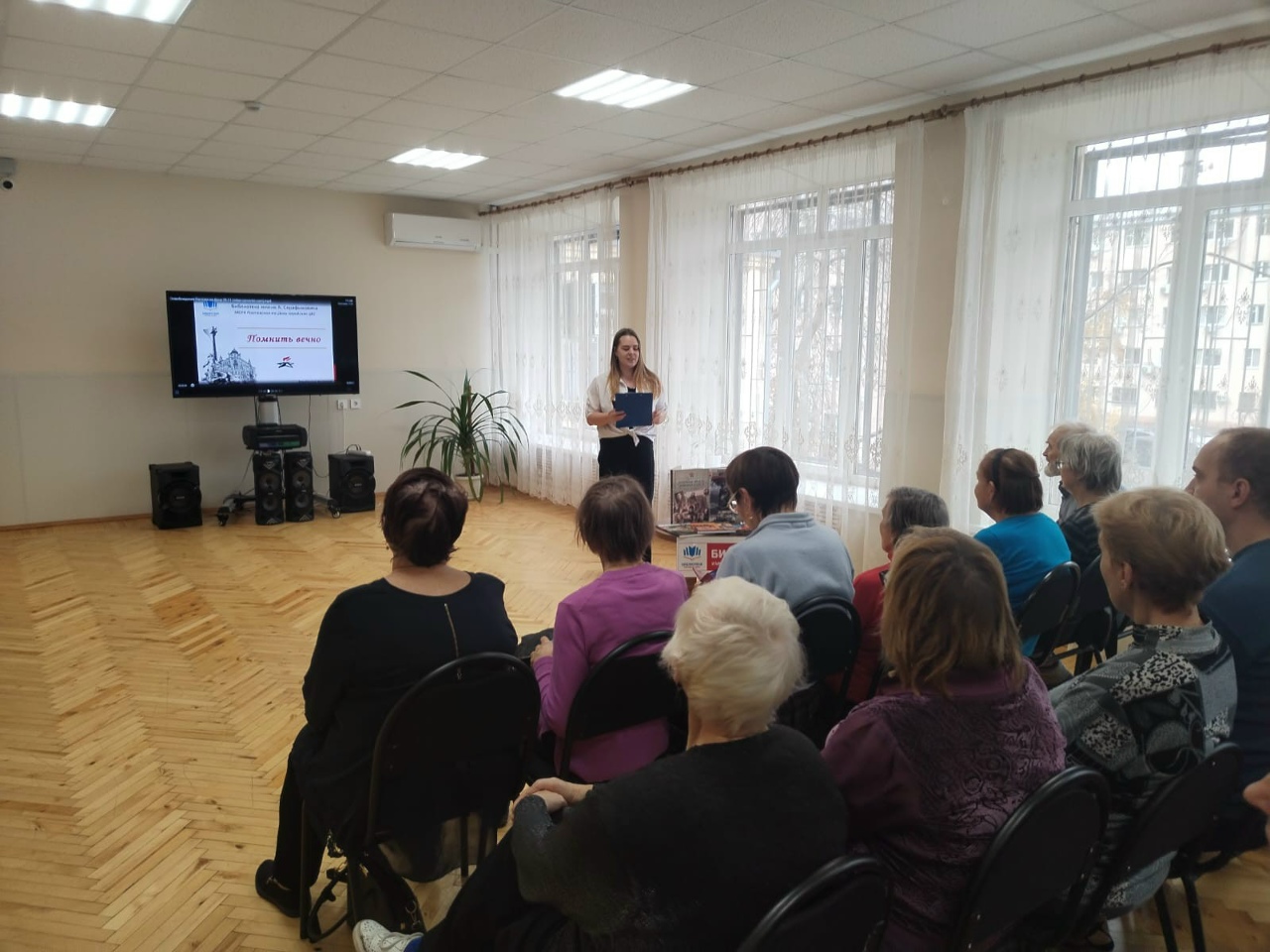Библиотека имени А. Серафимовича в честь Первого освобождения Ростова-на-Дону от немецко-фашистских захватчиков провела Исторический час «Помнить вечно» для посетителей отделения дневного пребывания МБУ «Центра социального обслуживания населения Первомайского района города Ростова-на-Дону».
