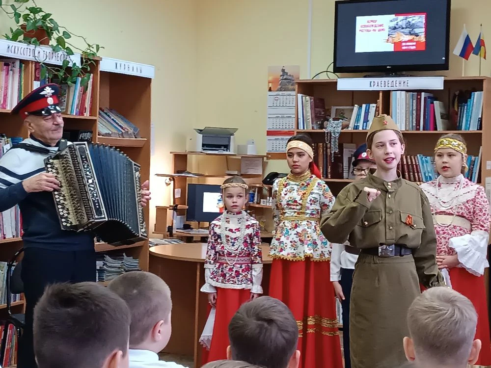 В гости к читателям пришли участники ансамбля «Родничок» МБУ ДО города Ростова-на-Дону «Дворец творчества детей и молодежи». Ребята исполнили песни донских казаков и конечно же знаменитую «Катюшу», которую подпевал весь зал.