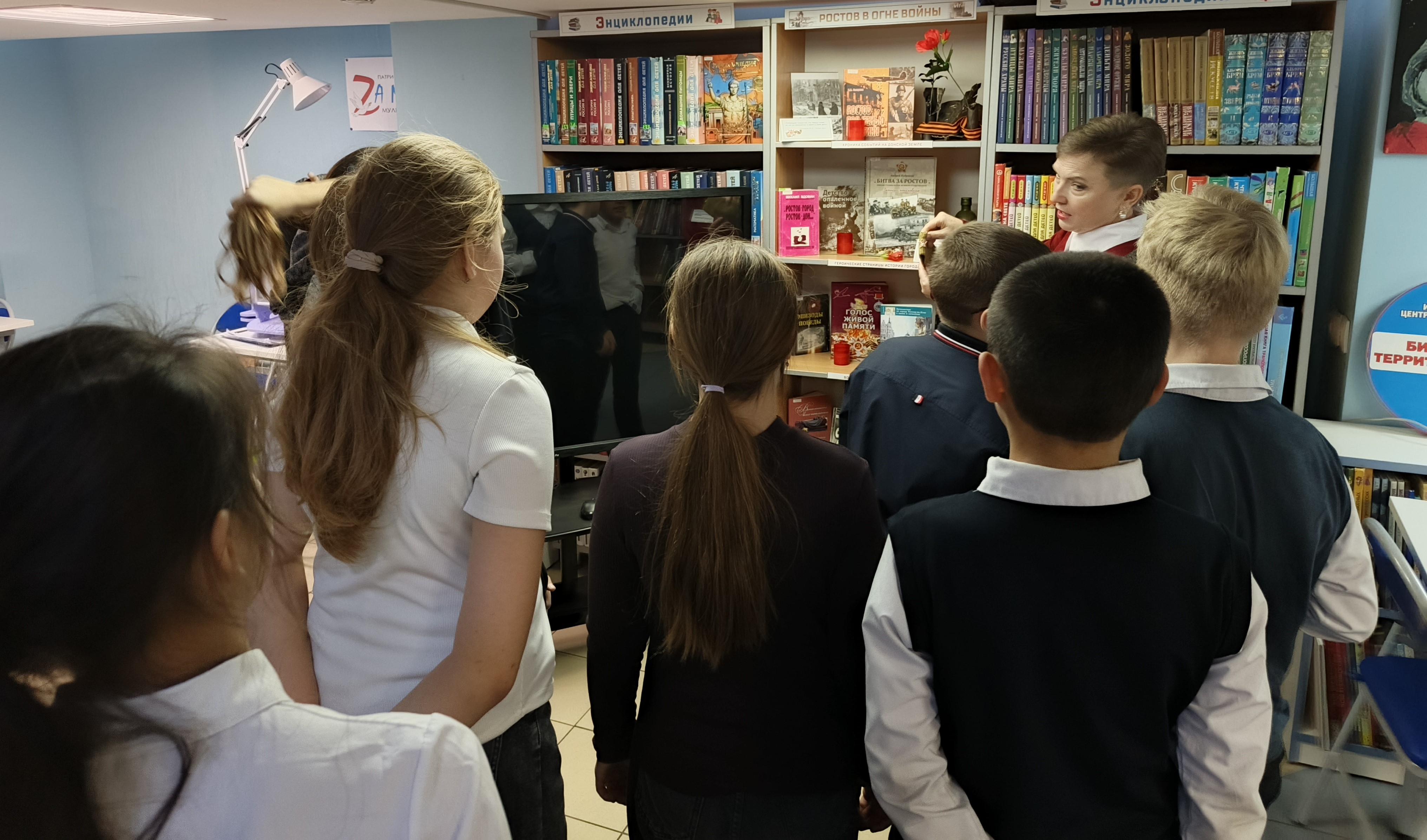 Накануне 84-ой годовщины первого освобождения Ростова-на-Дону от немецко-фашистских захватчиков в Библиотечно-информационном центре имени Ю. А. Гагарина состоялся патриотический час «Не забудем ваш подвиг» для учащихся МБОУ «Школа № 107 имени Героя Советского Союза Вартаняна Г.А.».