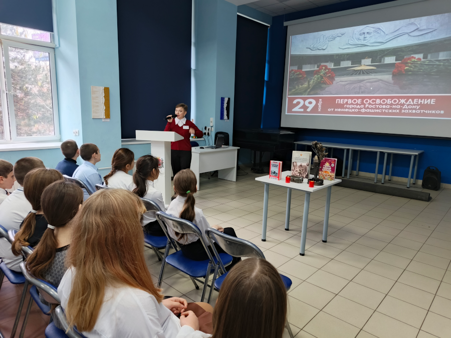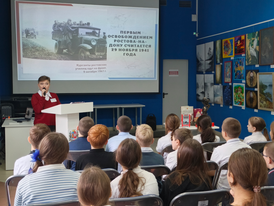 В ходе мероприятия школьники узнали о двух оккупациях города Ростова-на-Дону, особое внимание было уделено детальному рассказу о первом освобождении города от немецко-фашистских захватчиков.