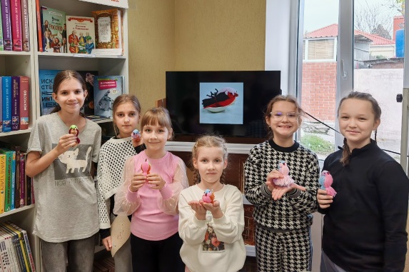 Под руководством наставника-библиотекаря у ребят получились замечательные птахи. Некоторые из них в будущем украсят новогоднюю елку, другие станут подвесками. А одна из невеличек - любимой мягкой игрушкой.