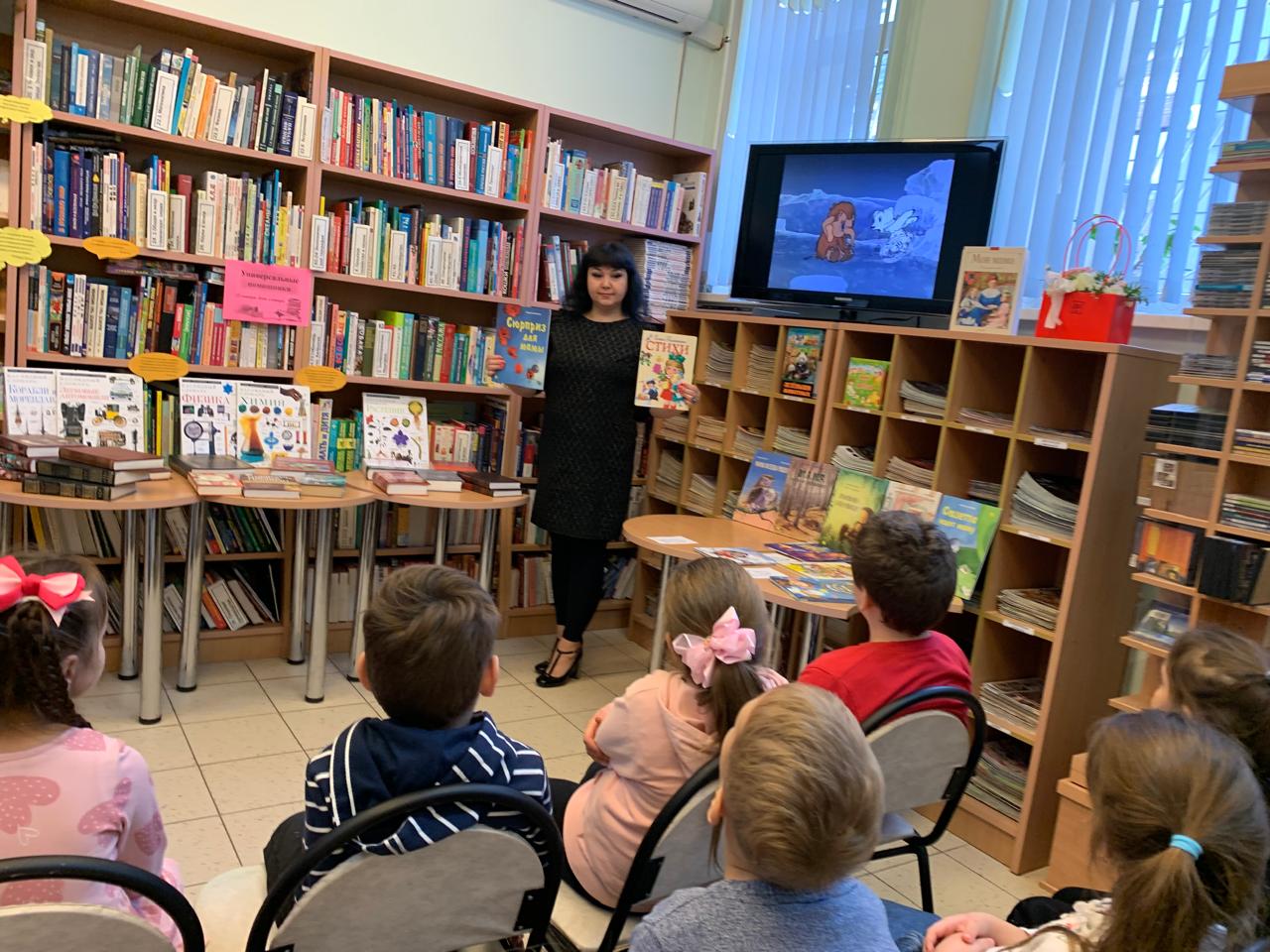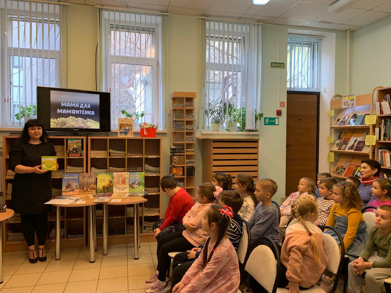 Малыши посмотрели фрагменты мультфильмов «Мама для мамонтёнка», «Осторожно, обезьянки!», выбрали картинки для раскрашивания «Мамино счастье» и познакомились с книжной выставкой «Лучшие мамы на свете!».