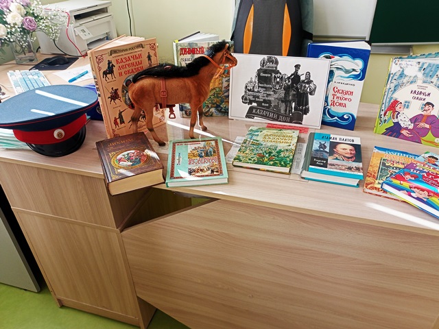 В заключение мероприятия ребята ознакомились с книжной выставкой «Казачий Дон», на которой были представлены книги о казачестве, о прошлом и настоящем нашего города, а также произведения донского фольклора.