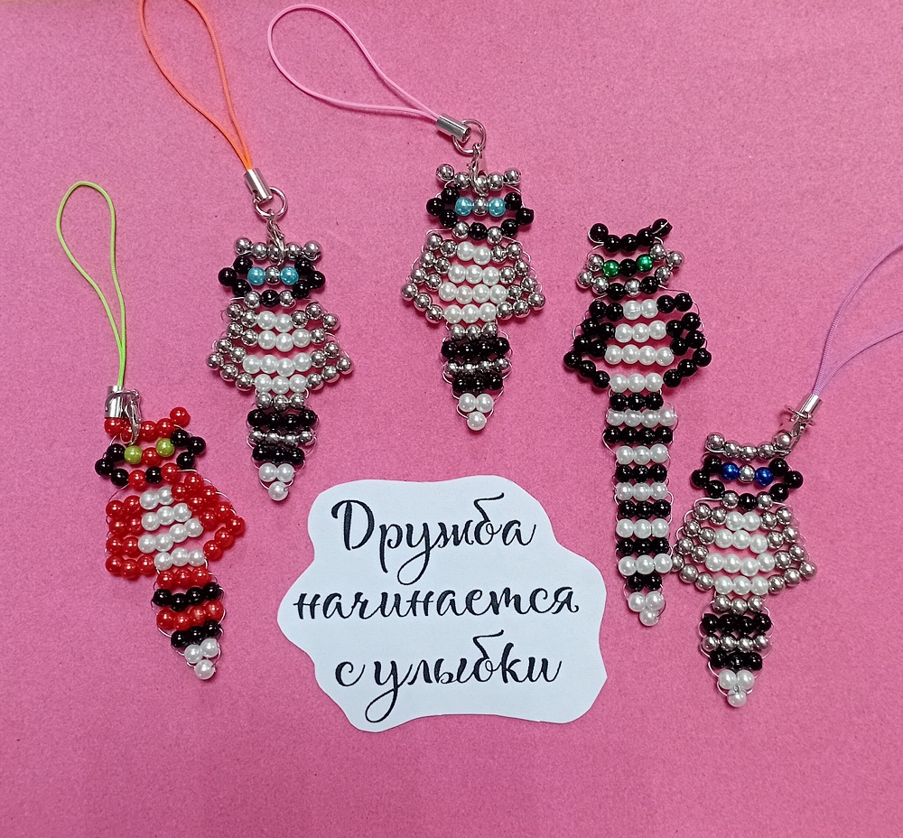 Каждый сплетенный в этот день енотик вышел по своему оригинальным, а с подвеской-карабином они превратились в готовые елочные игрушки.