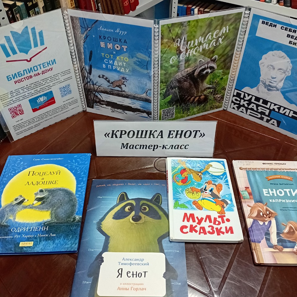 Гости библиотеки услышали историю литературного первоисточника, по которому в СССР был снят «Крошка Енот», и познакомились с другими книгами о енотах, представленными на выставке.