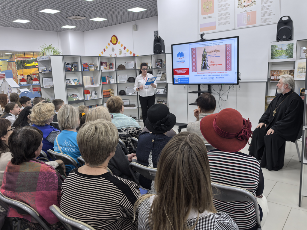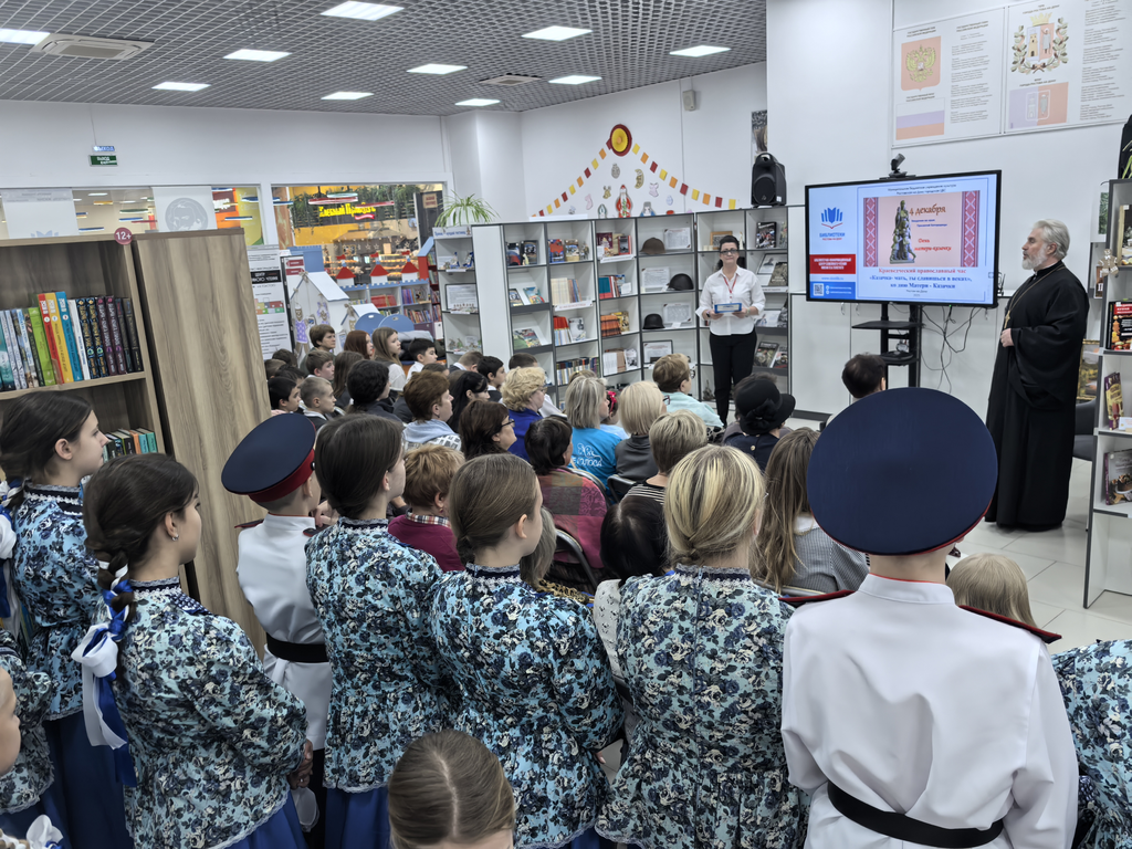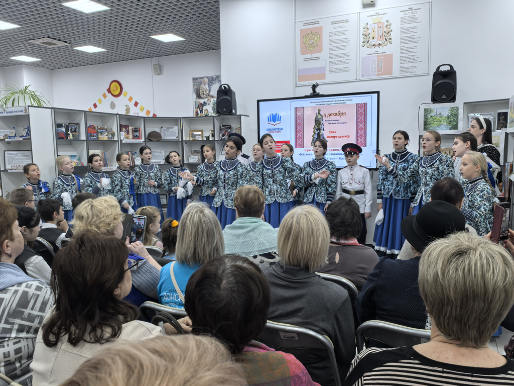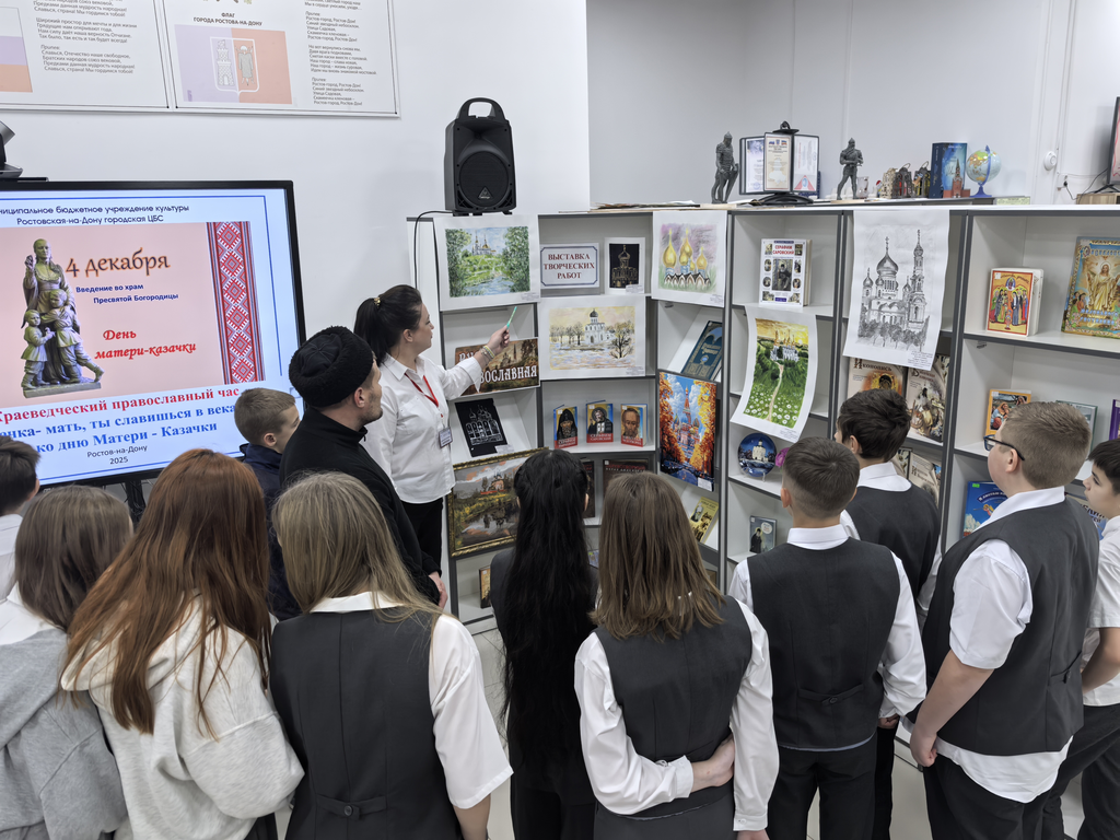 Краеведческий православный час «Казачка-мать, ты славишься в веках» стал важным культурно-духовным событием, которое объединяет людей разных поколений. В нем приняли участие учащиеся МАОУ «Школа №74», члены клубов «СТИХиЯ», «Родник», «Серебряный возраст», прихожане Храма в честь Святых благоверных страстотерпцев Бориса и Глеба, ребята из хора «Донские голоса» и простые любители чтения. Совместными усилиями участники подчеркнули значимость казачьего наследия и материнства как духовных опор общества, в очередной раз укрепляя связь между прошлым и настоящим через ценности и традиции казачества.