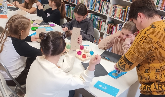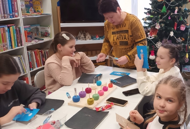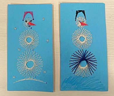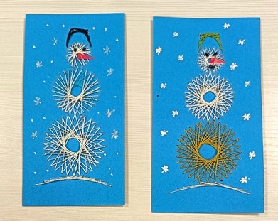 Под руководством библиотекаря ребята решили сделать ему подарок, вышить его портрет. Вышивка – один из самых распространенных видов рукоделия. На Руси умение искусно вышивать передавалось из поколения в поколения и обучать этому ремеслу начинали с 4-5 лет. Дети с большим интересом занялись вышивкой снеговиков в технике изонить.