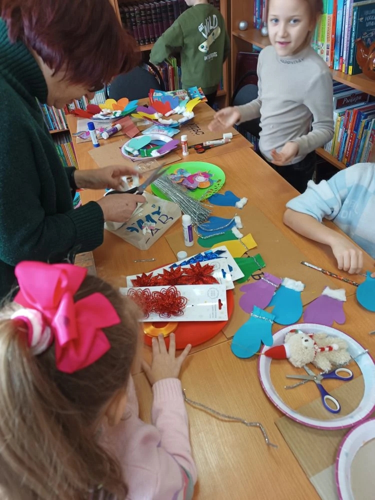 Участники клуба «Весёлая мастерская» старательно готовятся к предстоящим новогодним праздникам. В детской библиотеке имени З. Космодемьянской состоялось очередное занятие, на котором ребятишки мастерили «Новогодний венок» из картона и цветной бумаги.