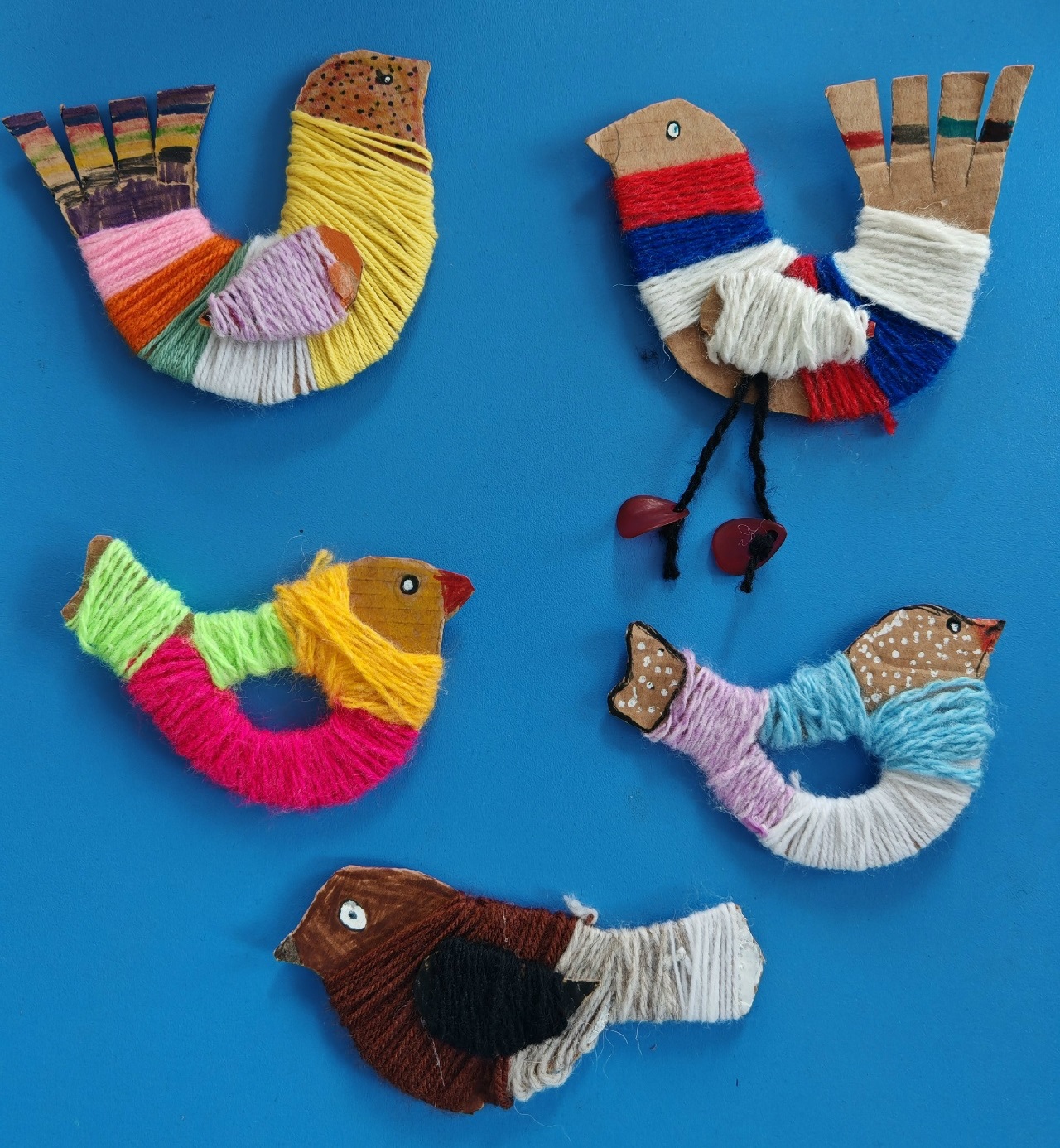 Во время занятия для ребят был проведен мастер-класс по освоению первых, простых техник работы с нитками. Участники выбрали понравившиеся им шаблоны, из плотного картона вырезали основы своих будущих изделий. И используя технику «наматывания», создали свои поделки. Ребята остановили свой выбор на изготовлении птиц разных форм и размеров.