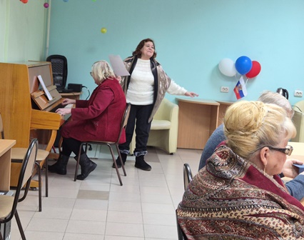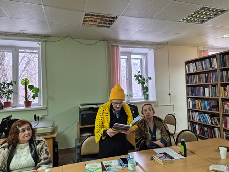 Заседание продолжила Музыкально-поэтическая эстафета «И я студентом был когда-то…». Дуэт «Две Ларисы» (автор музыки Лариса Лабутина и литератор Лариса Фомина) исполнил свою песню «Сегодня день рожденья у тебя!», обращённую к имениннице – члену клуба Татьяне Боженковой.