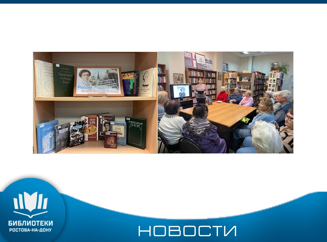 В Библиотеке имени А. В. Калинина представили литературный портрет «Мир Александра Блока» к 145-летию со дня рождения А.А. Блока. Ведущая мероприятия рассказала о жизни и творчестве Александра Блока, начиная с детства и детских стихов поэта. Участники мероприятия рассмотрели литературное течение – символизм, родоначальником которого в литературе был Шарль Бодлер. А в России это были Дмитрий Мережковский, Валерий Брюсов и, конечно же Александр Блок. В ходе встречи были зачитаны отрывки из автобиографии ...