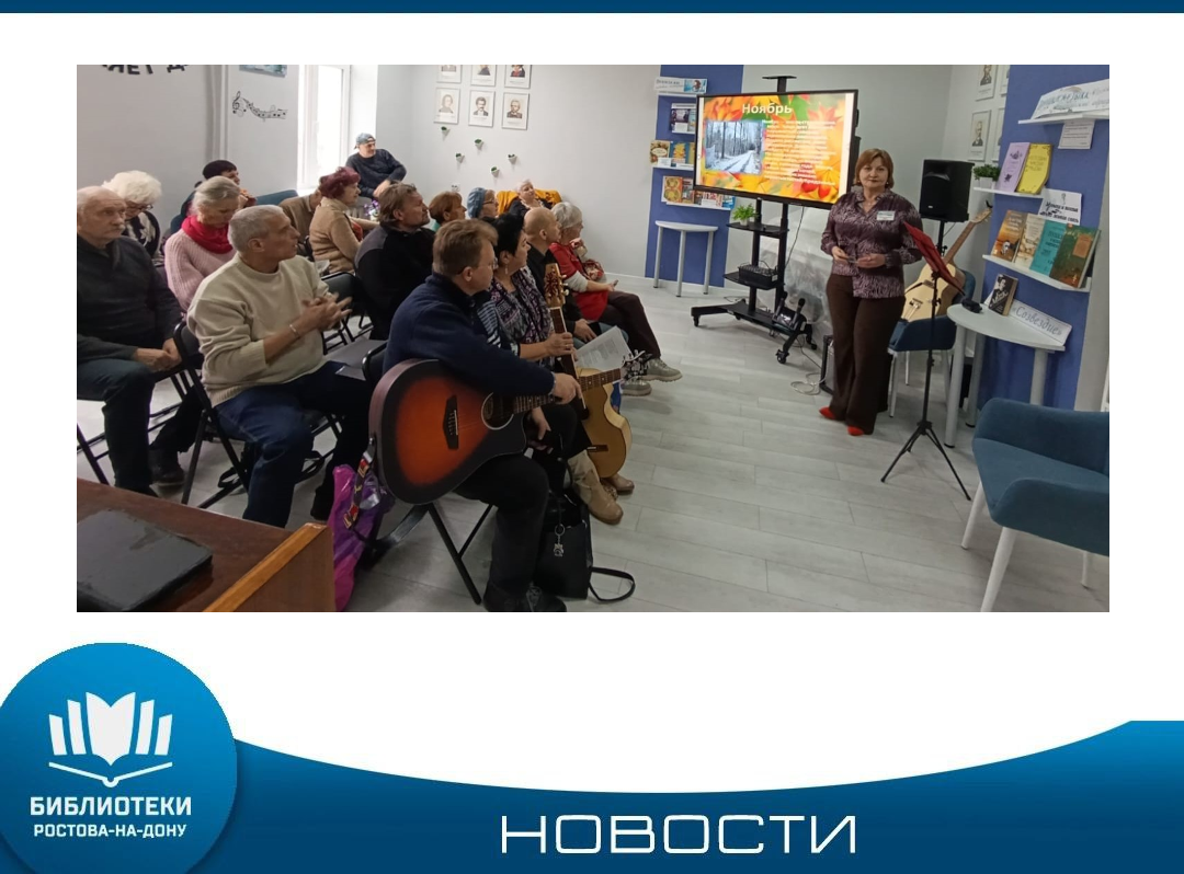В музыкальном салоне «АнтреСоль» Центральной городской библиотеки имени М. Горького состоялось заседание клуба авторской песни и поэзии «Созвездие», посвященное осенней лирике в русской поэзии и музыке. В начале мероприятия заведующий сектором читального зала музыкально-нотного отдела провела беседу «Вспоминая поэта-самоучку Ивана Захаровича Сурикова». Специалист библиотеки показала участникам клуба авторскую презентацию «Осень в русской поэзии», в которой были представлены стихотворения знаменитых ...