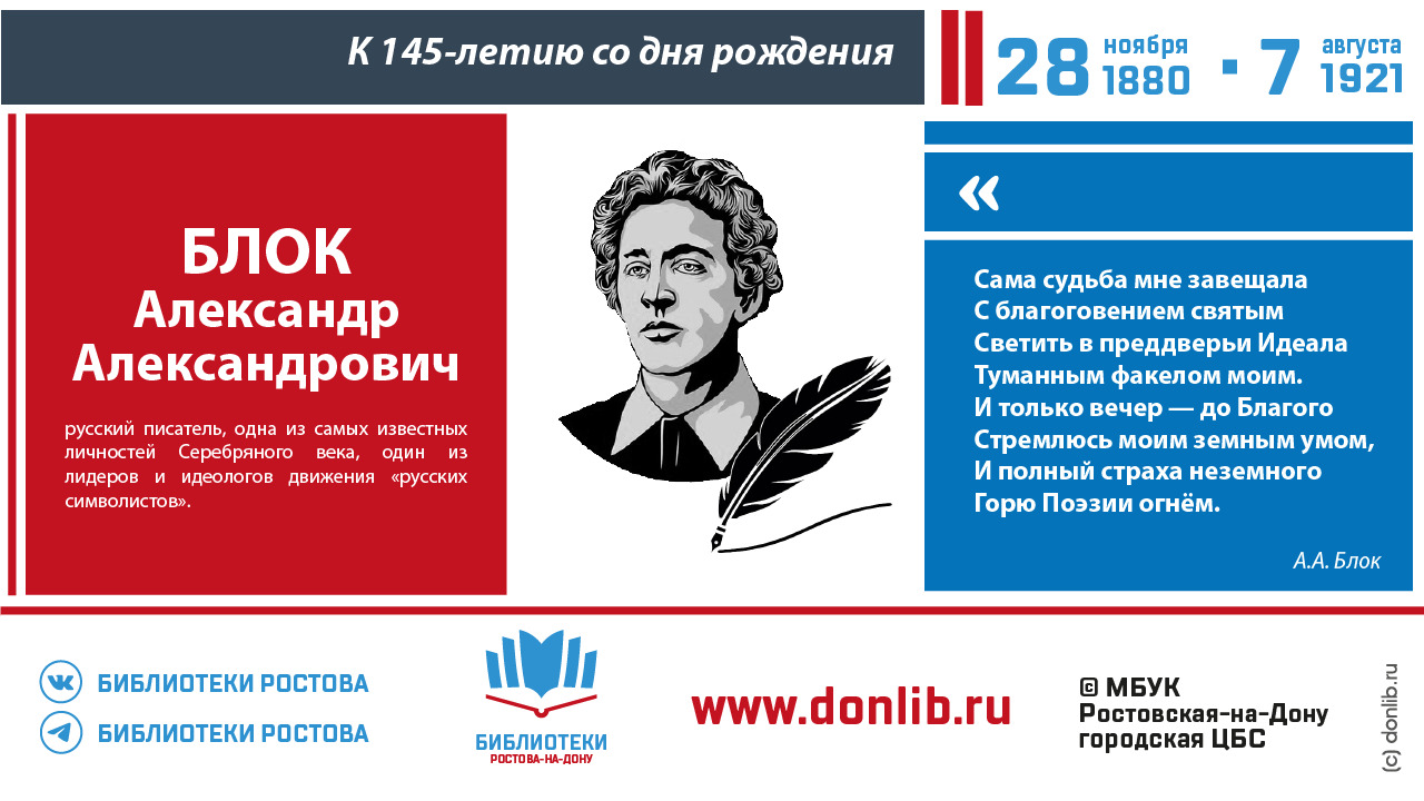 28 ноября 2025 года исполняется 145 лет со дня рождения Александра Александровича Блока. Александр Александрович Блок, выдающийся русский поэт и драматург, был ключевой фигурой Серебряного века и представителем символизма. Его произведения, наполненные глубоким символизмом, метафорами и эмоциональной лиричностью, оказали значительное влияние на развитие русской поэзии. Творчество Блока остаётся актуальным, отражая дух времени и переживания, волнующие читателей. Его новаторский подход к стихосложению ...