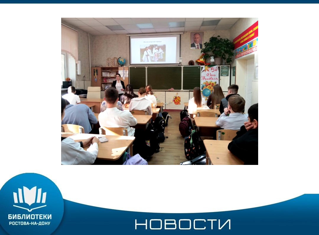 В конце октября во всем мире отмечается Международный день городов. В преддверии этой даты библиотека имени А. С. Пушкина провела для школьников Частной школы «Источник знаний» экскурсию «Самая центральная – площадь Театральная!». В ходе экскурсии ребята прикоснулись к истории тех мест, где живут. А заглянуть в прошлое Ростова помогли замечательные книги ростовских краеведов и материалы периодических изданий, которые можно найти в библиотечном фонде. Это – фотоальбомы со снимками старого города, ...