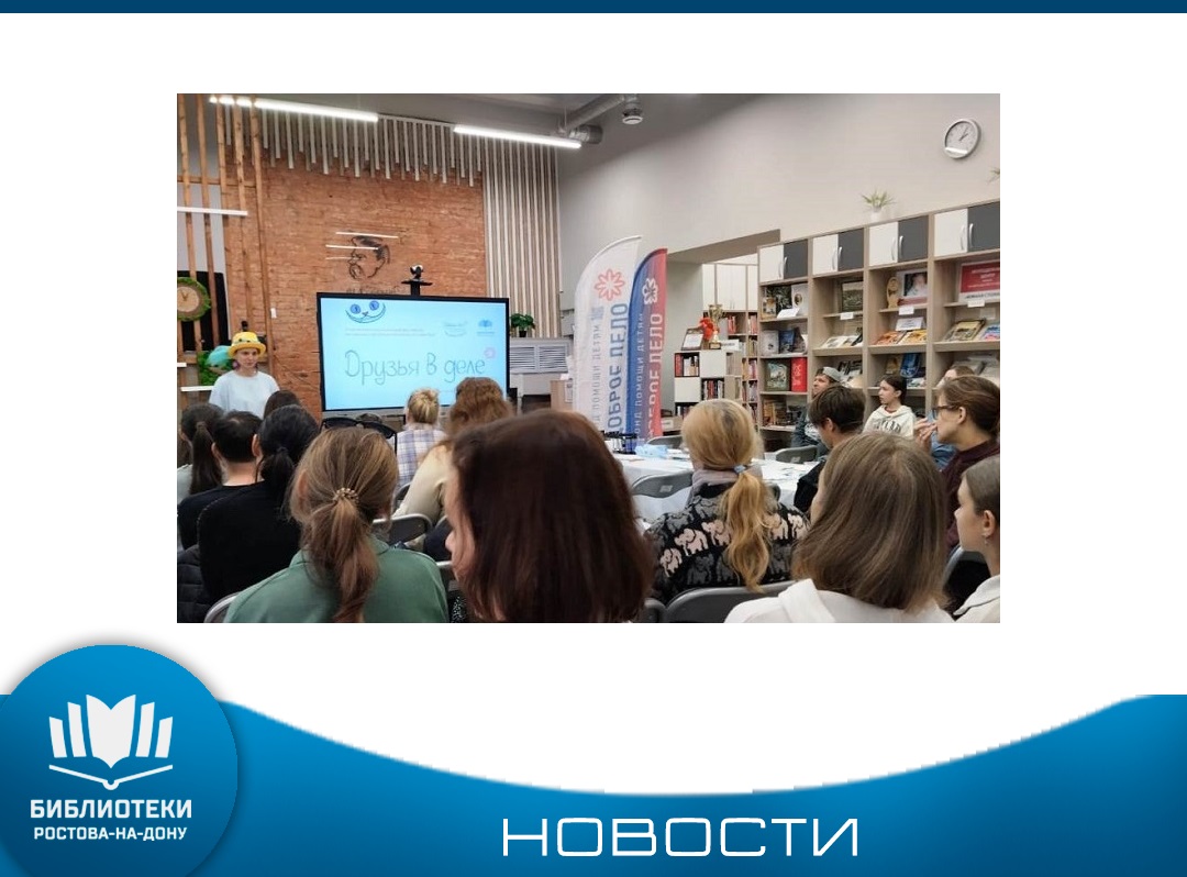 В читальном зале Центральной городской библиотеки имени М. Горького прошёл второй благотворительный фестиваль интересностей «Друзья в деле» для детей и всех, кто ими был. Организатор – Благотворительный фонд помощи детям «Доброе дело». Тема этой встречи - сказка «Алиса в Стране чудес». Участники фестиваля познакомились с фондом помощи детям «Доброе дело». Миссия фонда - дарить радость детям. Оказывать помощь малоимущим многодетным и неполным семьям, детям и семьям, оказавшимся в трудной жизненной ...