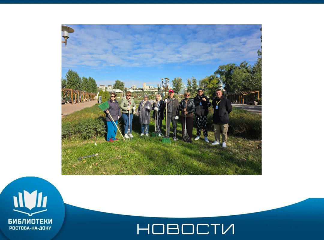 27 сентября в городе Ростове-на-Дону в рамках месячника чистоты состоялся Городской субботник, который помогает почувствовать причастность к своему городу, учит бережному отношению к чистоте и труду, а также является важной народной традицией, способствующей созданию чистого и уютного мира. Библиотеки Ростова поучаствовали в Городском субботнике: в парке Левобережный и на прилегающих к библиотекам территориям. Был собран мусор, вычищены газоны. Следите за новостями на нашем сайте, подписывайтесь ...