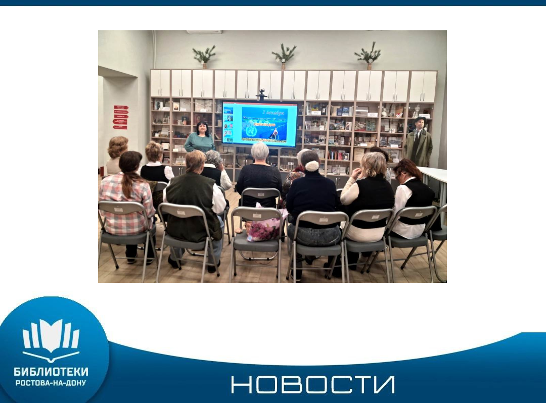 Час милосердия «Равные среди равных» посвященный Международному дню инвалидов, провели специалисты читального зала на заседании клуба «От сердца к сердцу». Участники клубного заседания узнали о том, что рядом с нами есть особенные люди с ограниченными возможностями здоровья. Они обладают огромным мужеством, необычайной силой воли и жизнелюбием. Они не просто умеют жить, но и ведут активный образ жизни – участвуют в конкурсах и фестивалях, показывают хорошие результаты на спортивных соревнованиях, ...