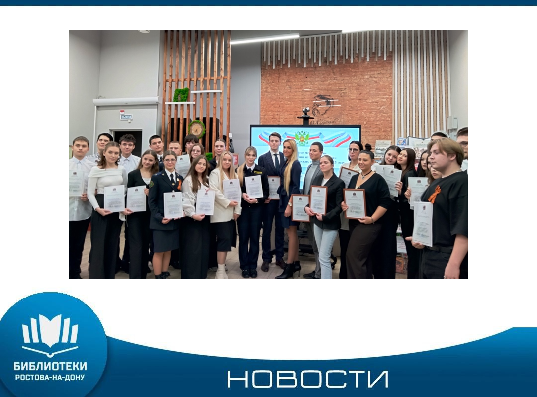В читальном зале Центральной городской библиотеки имени М. Горького под руководством администрации Ленинского района, ко Дню освобождения г. Ростова-на-Дону от немецко-фашистских захватчиков, состоялась торжественная церемония награждения по итогам патриотических мероприятий и акций в молодежной среде Ленинского района. Участниками мероприятия были представители молодежи Ленинского района, которые внесли достойный вклад в гражданско-патриотическое направление. На мероприятии присутствовали: заместитель ...