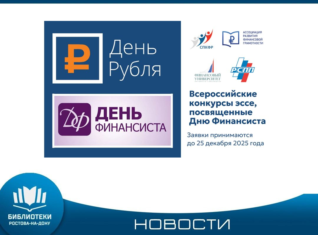 Министерство финансов Российской Федерации проводит Всероссийские конкурсы эссе: «День Финансиста» и «День Рубля». Конкурсы проводятся в целях поддержания традиций написания сочинения как самостоятельной творческой работы; повышения уровня знаний учащихся об истории России; повышения уровня знаний о героизме нашего народа в специальной военной операции; содействия развитию активной гражданской позиции учащихся, направленной на сохранение ценностей и традиций России. Конкурсы ориентированы на обучающихся ...