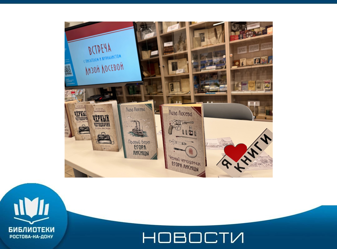 В читальном зале Центральной городской библиотеки имени Максима Горького, в рамках международного книжного проекта «Страницы», состоялась насыщенная и вдохновляющая встреча с известной ростовской писательницей, журналистом и редактором Лизой Лосевой. Мероприятие собрало специалистов Библиотек Ростова, заинтересованных в творческом пути и литературных достижениях автора. Лиза Лосева прошла путь от работы на телевидении, более десяти лет, до создания книг и сценариев. Лиза — автор множества статей, ...