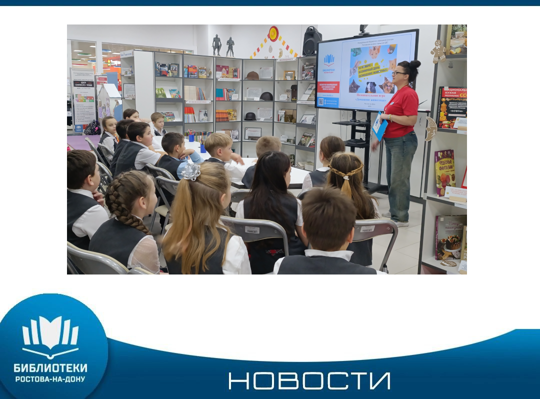 В преддверии Всемирного дня домашних животных в Библиотечно-информационном центре семейного чтения имени Л. Н. Толстого для учащихся 3 «И» класса МАОУ «Школа №74», прошла познавательная игра «Домашние животные». Мероприятие началось в дружеской и теплой атмосфере, создавая комфортные условия для участников. Дети активно отвечали на вопросы, делились своими знаниями и историями о домашних питомцах, рассказывая о своих любимцах. Также они выполняли различные задания и с мастерством создали фигурки ...