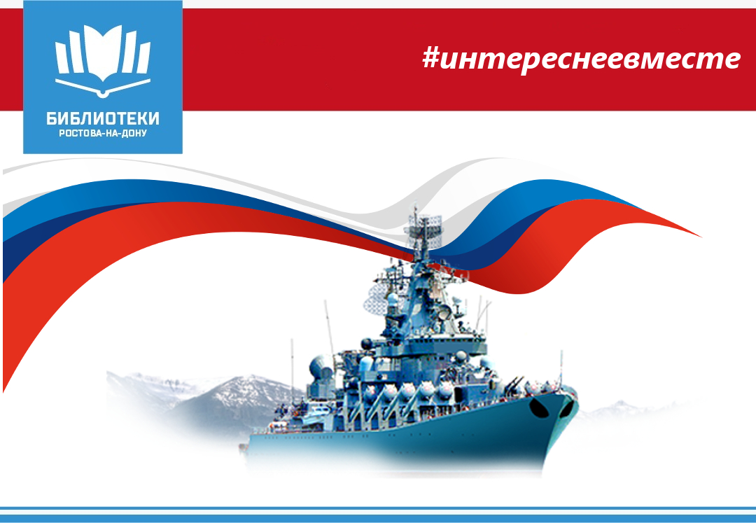Мы славим тех, кто вместе с флотом вырос, Кто все моря и океаны исходил, Кто сто штормов так богатырски вынес, Все трудности походов победил. 26 июля вся наша необъятная Родина отмечала праздник – День Военно-Морского Флота, это профессиональный праздник военнослужащих ВМФ и всех работников, чья деятельность связана с флотом. К празднующим присоединяются члены семей служащих, представители учреждений и предприятий, обслуживающих флотилию, ветераны Вооруженных сил. Библиотека М. Ю Лермонтова приглашает ...