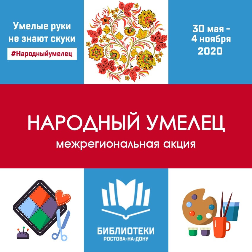 Дорогие друзья! МБУК Ростовская-на-Дону городская ЦБС приглашаем вас принять участие в межрегиональной акции «Народный умелец».Целью акции является сохранение и развитие традиций в области декоративно – прикладного творчества. Для участия в акции необходимо: - ознакомиться с положением о проведении акции «Народный умелец»;- разместить в группе «Умелые руки не знают скуки» фото готового изделия в любой технике (смешанных техниках) декоративно-прикладного творчества.Необходимо:- разместить 3 фото одного ...