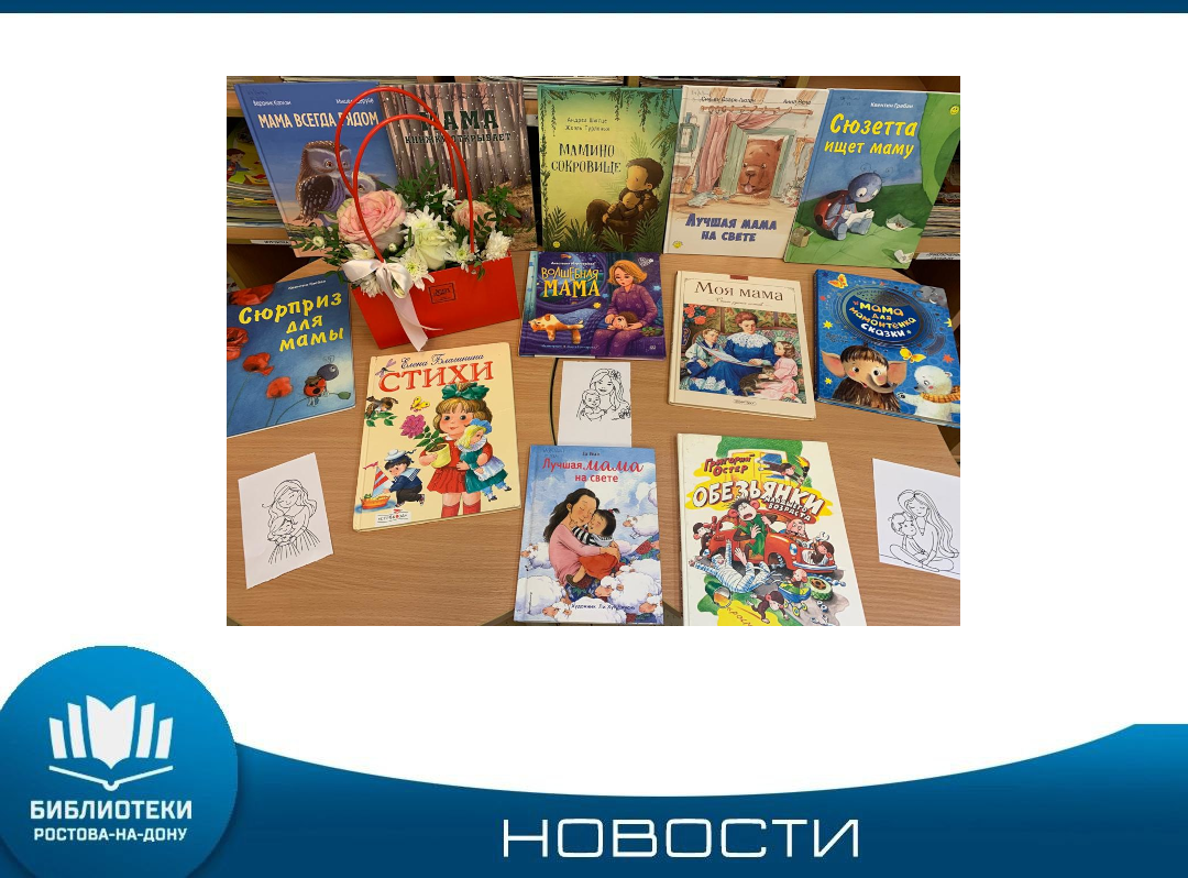 В преддверии праздника Дня матери в России в Детской библиотеке имени В. В. Маяковского провели литературное путешествие «Праздник мамы» для воспитанников ростовского садика № 71. Ребята поделились своими планами на последнее воскресенье ноября, когда в России отмечают особый праздник - День матери, рассказали о том, как поздравят своих мам: подарят рисунки, цветы из бумаги, стихи, танцы, торты. Мальчикам и девочкам понравилась добрая история «Мама для мамонтёнка» (автор – Дина Непомнящая), весёлая ...