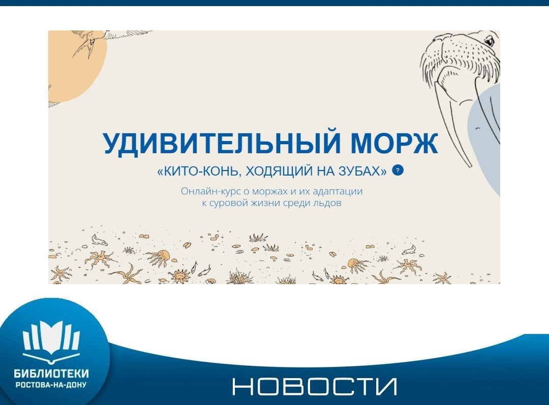 Президентский физико-математический лицей № 239 при поддержке образовательной платформы «Лекториум» разработал бесплатный детский онлайн-курс про одного из самых известных «героев» Арктики — моржа. Автором курса является Таврило Мария Александровна, ведущий научный сотрудник ГНЦ ААНИИ, лаборатория «Арктикшельф», потомственный полярник. Ссылка на курс: https://www.lektorium.tv/walruses Следите за новостями на нашем сайте, подписывайтесь на нас в социальных сетях ВКонтакте, Telegram, ОК. ...