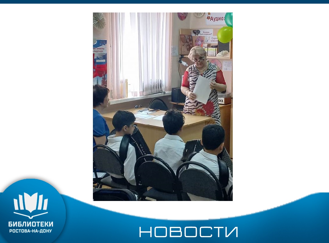 В Краеведческом БИЦ имени М.А. Шолохова МБУК Ростовская-на-Дону городская ЦБС прошло мероприятие в форме Краеведческой гостиной «Преемственность поколений талантов», приуроченное к 110-летию основания Ростовского художественного училища имени М.Б. Грекова. Библиотекарь в начале мероприятия провела беседу со школьниками из летнего лагеря МБОУ «Школа №67» о том, любят ли люди рисовать, где востребованы художники, как стать художником. Затем, используя презентацию «Здесь учат на художников и дизайнеров», ...