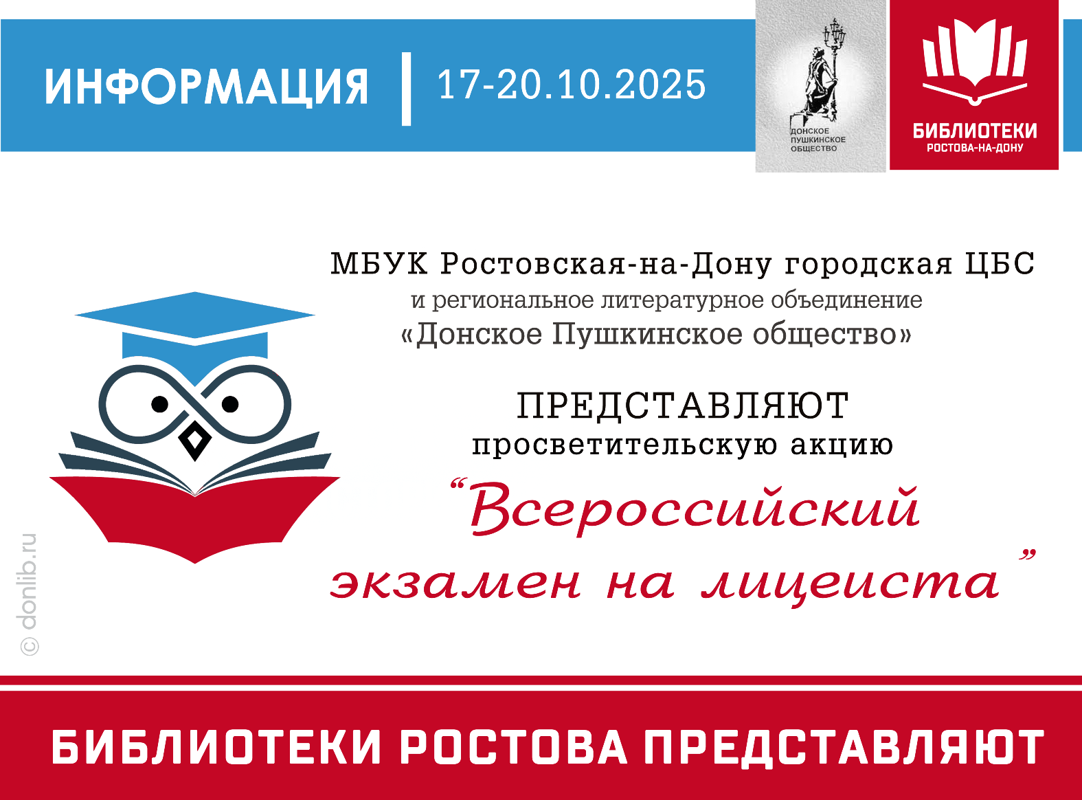 Здравствуйте, дорогие участники «Всероссийского экзамена на лицеиста-4», инициированного Централизованной библиотечной системой города Ростова-на-Дону, организованного филиалом № 16 - Библиотекой имени А.С. Пушкина при поддержке регионального литературного объединения «Донское Пушкинское общество». Основная цель нашей просветительской акции – познакомить вас с интересными событиями отечественной истории, культуры и образования, связанными с лицеями и лицеистами в России, дать возможность расширить ...