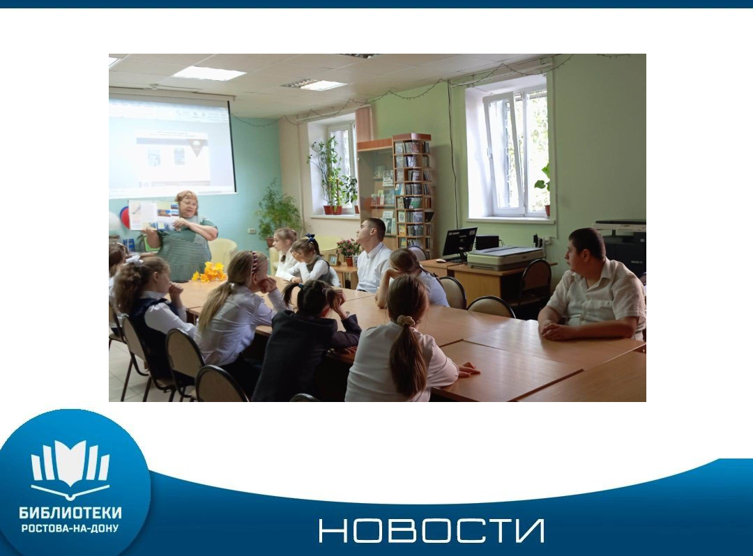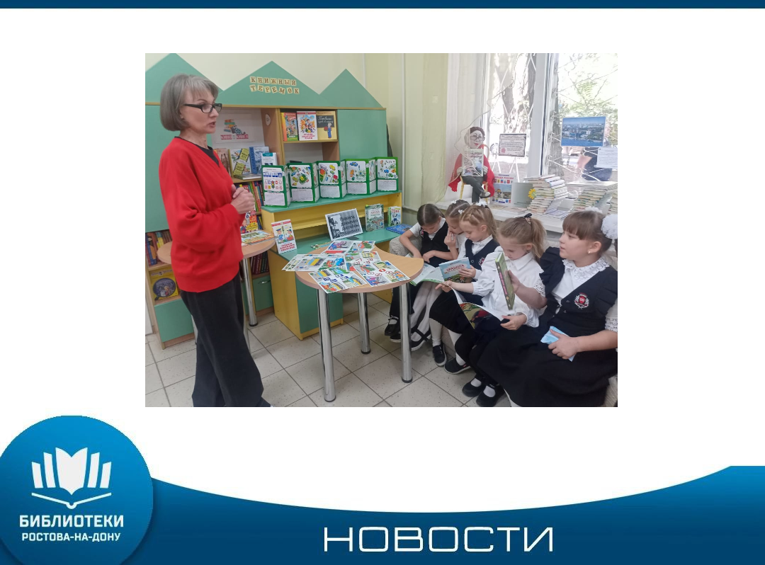В детской библиотеке имени В. В. Маяковского в преддверии Дня города Ростова-на-Дону был проведён краеведческий круиз «Прогулка по любимому городу» для учеников 3 «Г» и 1 «Г» классов ростовской школы № 80. Девочки и мальчики совершили виртуальную экскурсию по историческим местам нашего города: «богатый колодезь» Петра 1, Темерницкая таможня, Крепость Димитрия Ростовского, православные храмы, монастырь Сурб-Хач, набережная реки Дон, посмотрев видеоролик нашего юного читателя Платона «История Ростов-на-Дону». ...