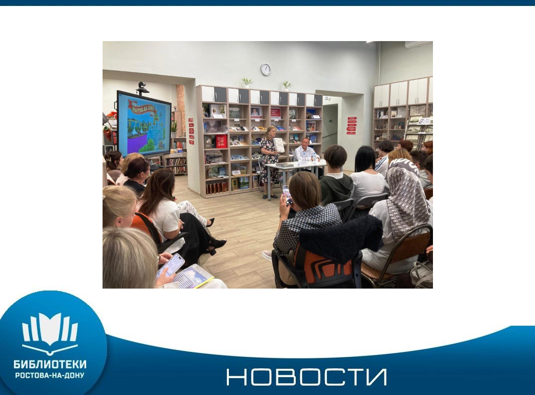 Литературная гостиная «Ростов-город, Ростов-Дон» ко Дню города Ростова-на-Дону прошла в читальном зале ЦГБ имени М. Горького в рамках молодежного центра имени профессора В. В. Смирнова. Гостями мероприятия стали Елена Петровна Смирнова, заслуженный работник культуры РФ, почетный радист России и Юрий Станиславович Нестеров — член Международного «Союза педагогов-художников», член Творческого союза художников России», руководитель творческого объединения преподавателей ДХШ, ДШИ города Ростова-на-Дону ...