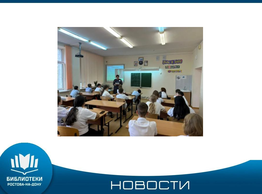 В предверии Дня города в МБОУ Лицее № 58 в 5 «Е» классе специалисты Краеведческого библиотечно-информационного центра имени М. А Шолохова провели Краеведческий час «Кем и чем славен Ростов-на-Дону», приуроченный к 276-летию г. Ростова-на-Дону. В начале мероприятия ведущая рассказала об истории празднования Дня Ростова-на-Дону. О том, как развивался город. Официальной датой основания города Ростова-на-Дону считается 15 декабря 1749 года, когда императрица Елизавета Петровна своим указом основала Темерницкую ...