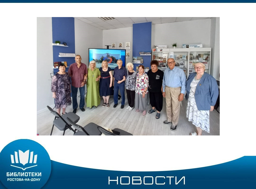 Литературная гостиная «Ростов-город, Ростов-Дон» ко Дню города Ростова-на-Дону прошла в читальном зале ЦГБ имени М. Горького в рамках молодежного центра имени профессора В. В. Смирнова. Гостями мероприятия стали Елена Петровна Смирнова, заслуженный работник культуры РФ, почетный радист России и Юрий Станиславович Нестеров — член Международного «Союза педагогов-художников», член Творческого союза художников России», руководитель творческого объединения преподавателей ДХШ, ДШИ города Ростова-на-Дону ...
