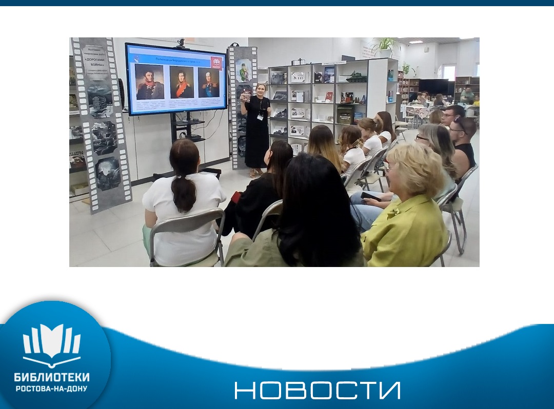 Военно-патриотический экскурс «Страницы донской истории» провели специалисты читального зала ЦГБ им. М. Горького для подопечных РРО ВОГ в рамках программы «Библиоопека». Мероприятие приурочено ко дню освобождения Ростовской области от немецко-фашистских захватчиков. Ежегодно, 30 августа, Ростовская область отмечает дату окончательного освобождения своей территории от немецко-фашисткой оккупации. Присутствующим была подготовлена презентация «Незабываемые страницы военных лет», с помощью которой библиотекари ...